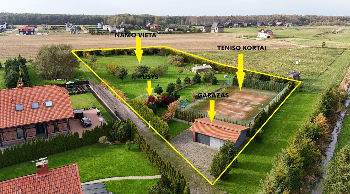PARDUODAMAS IŠPUOSELĖTAS SKLYPAS SU TENISO KORTAIS ŠALIA KLAIPĖDOS – TIK 2,5 KM IKI JŪROS